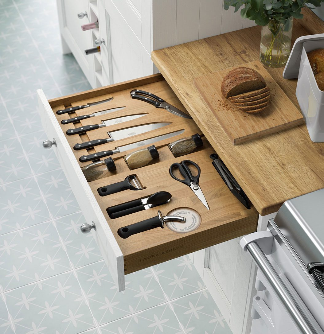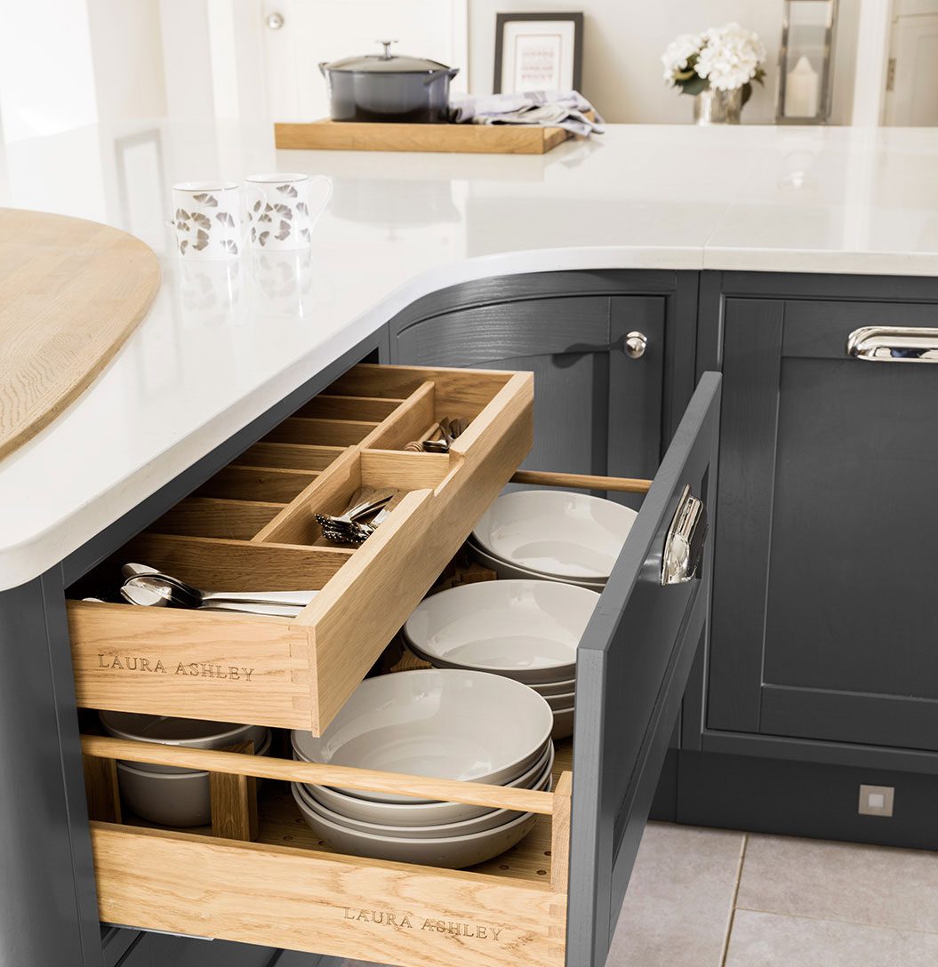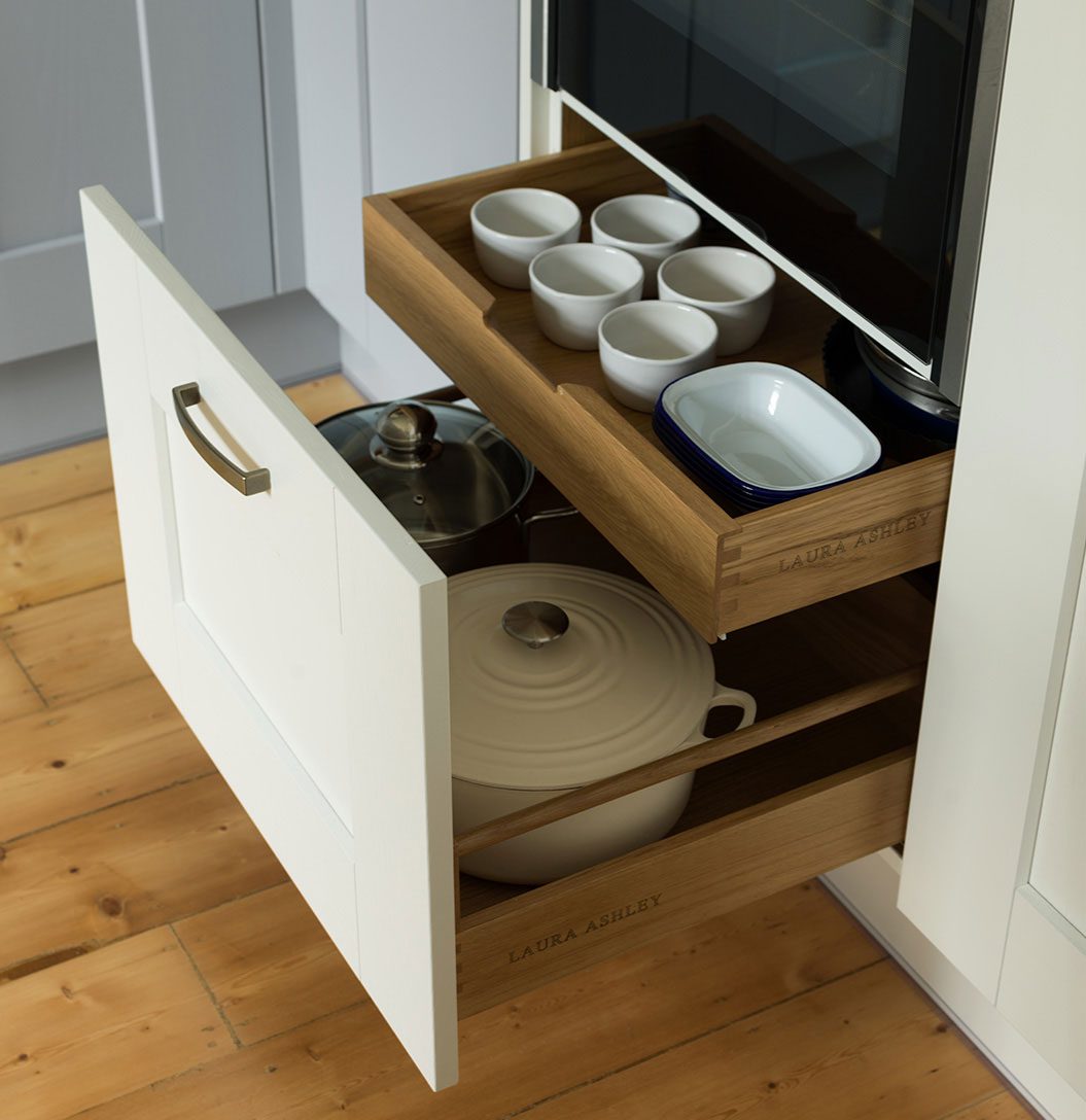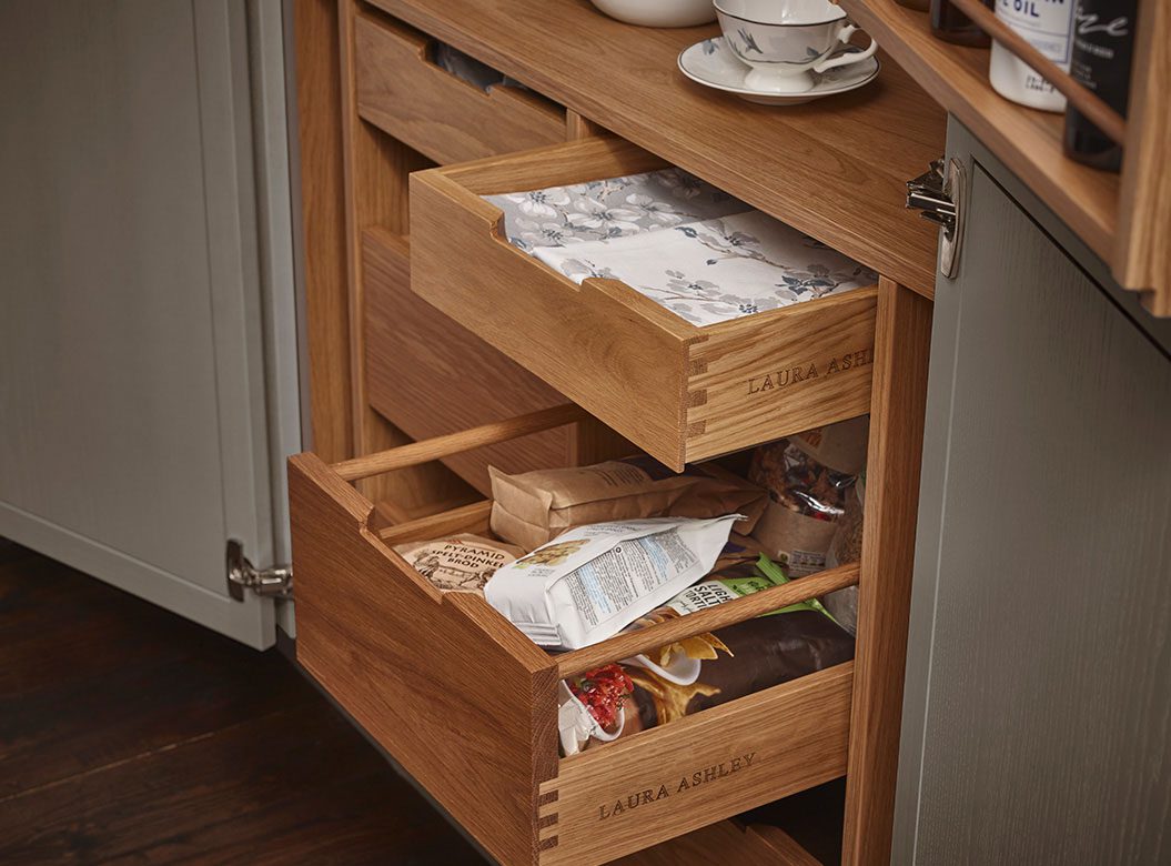 With a wide variety of smart storage solutions, tall units and beautiful finishes available, a Laura Ashley kitchen will enable you to make the most of your room and ensure there’s a neat storage space for every kitchen accessory and utensil.